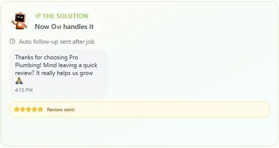 Stop losing customers to poor follow-up. Ovi handles reminders, form responses, and review management—keeping your operations running smoothly.