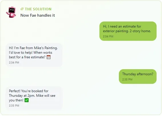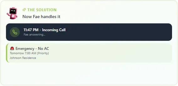 Never miss another call. Fae answers every inquiry with natural voice AI, books appointments, and responds to texts—24 hours a day, 7 days a week.